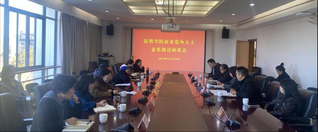 12月29日,昆明学院召开征求党外人士意见建议座谈会,学校党委副书记李莉出席并主持会议。学校民革、民盟、民进、致公党、九三学社5个民主党派基层组织和党外知识分子联谊会、留学人员联谊会班子成员,无党派人士代表参加会议。