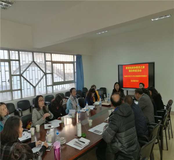 2017年12月13日,五华区政协教育组政协委员之家第四季度活动在五华区科研中心政协委员之家会议室举行。会议就《加强五华区中小学心理健康教育的建议》,对明年政协会议联组发言的稿件进行了集体讨论。