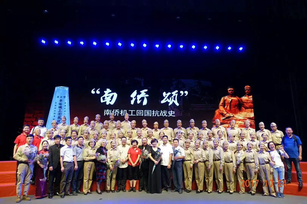 2017年10月23日至27日,南侨机工学会合唱团一行近70人在团长陈达亚女士带领下赴厦门参加“嘉庚精神宣传月”活动。合唱团以南侨机工回国抗战历史故事创作的交响合唱组歌《南侨颂》在嘉庚先生故居集美“福南大会堂”倾情演出。厦门市委统战部、集美区委宣传部、华侨大学,集美大学不同院校的师生及远道从南宁,重庆,海南等地的南侨机工后裔团队专程赶来,共两千多人先后分两场次观看合唱组歌《南侨颂》真情演唱。