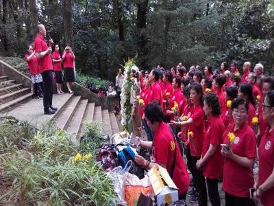此次活动在西山南侨机工纪念碑及聂耳纪念碑前举行纪念活动。全体人员向南侨机工纪念碑敬献了花圈、鲜花,并在纪念碑前合唱了《大刀进行曲》、歌颂南侨机工的歌曲《滇缅路上》及由聂耳创作的《告别南洋》。致公党昆明学院基层委员会兰玲、刘欣、张融作为南侨机工合唱团成员全程参加了此次纪念活动。